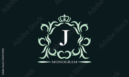 Elegant initial letter J logo. Vector illustration for restaurant, boutique, hotel, heraldic, jewelry, fashion, business signs or banner, labels.