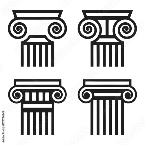 Elegant Ionic Column Vector Set for Architecture and Design.