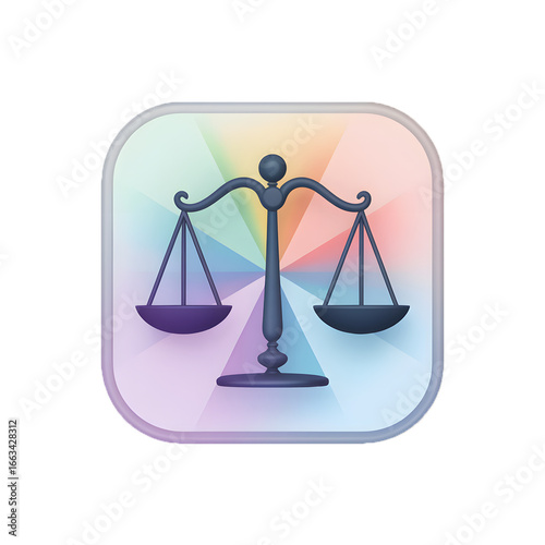 Elegant Justice Scale Icon Symbolizing Fairness and Equality with a Rainbow Background Promoting Diversity and Inclusion in Legal Matters