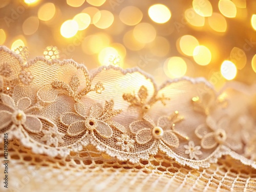 Elegant Lace Border, Soft Bokeh Background, Romantic Detail, Wedding Invitation Design, Craft Texture