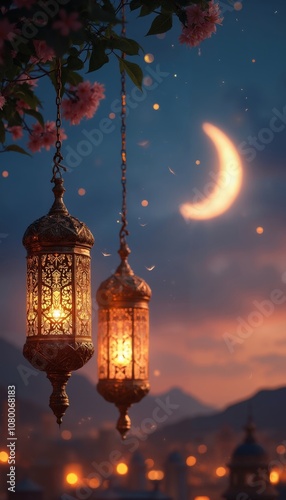 Elegant Lanterns Hanging Under a Mesmerizing Nighttime Sky Scene