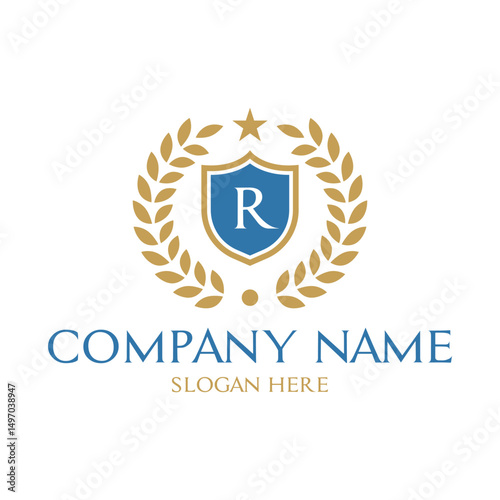 Elegant Letter R Royal Logo Design Concept With Laurel Wreath and Shield