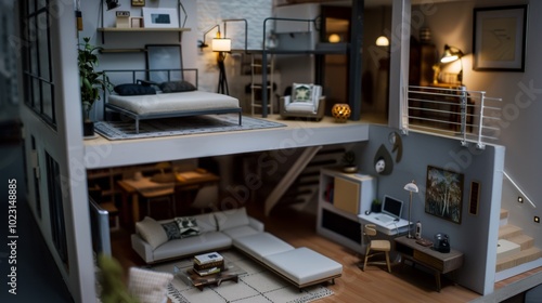 Elegant miniature modern house model with detailed, stylish interiors and open spaces, showcasing artistic design.