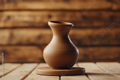 Elegant Minimalist Clay Pottery on Wooden Table with Natural Background in Warm Tones