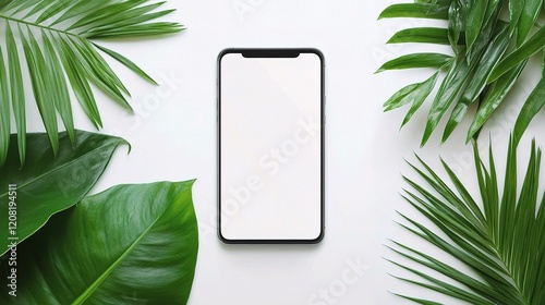 Elegant Minimalist Smartphone Mockup with Blank Display and Leaves