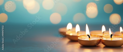 Elegant oil lamps glowing softly, creating a serene atmosphere surrounded by shimmering bokeh lights.