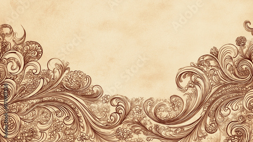 Elegant paisley and floral border design with swirling patterns on textured aged paper, perfect for creative and decorative purposes