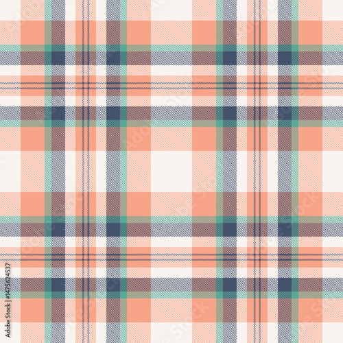 Elegant pastel plaid pattern. Soft peach, teal, and gray hues create a gentle, modern design. Perfect for textiles, fashion, or website backgrounds. Evokes feelings of calmness and sophistication.