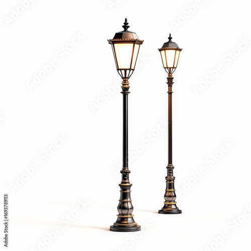 Elegant Pathway Lights with Ornate Details isolated on White Background