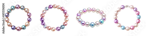 Elegant pearl and gemstone bracelets in various colors and designs.