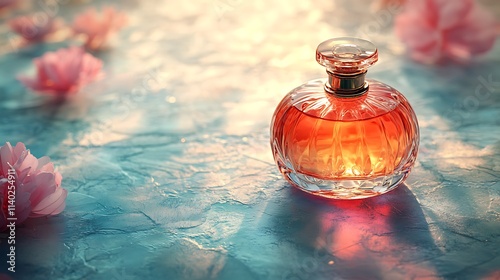 Elegant Perfume Bottle Amidst Delicate Pink Flowers