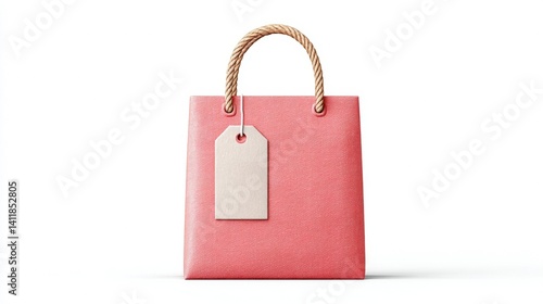 Elegant Pink Paper Shopping Bag with Twisted Rope Handle and Blank Tag for Customization