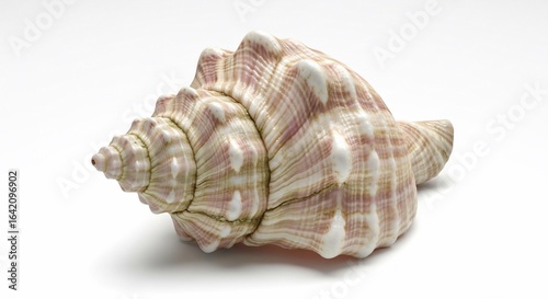Elegant Pink-Striped Seashell with White Knobs on a Clean White Background