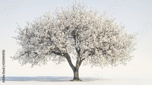 Elegant Plum Blossom Tree: Abstract Marketing Background for Creative Designs. Graceful Branches with Delicate Flowers on White Canvas. Versatile Artistic Element for Posters, Banners, and Digital Med