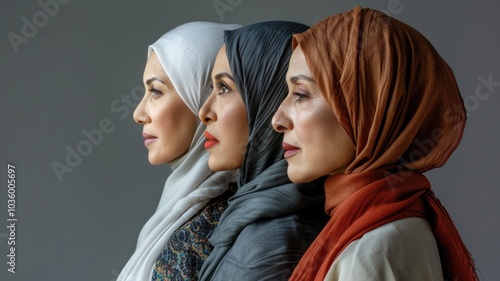 Elegant portrait of three women in hijabs highlighting cultural diversity , World Hijab Day