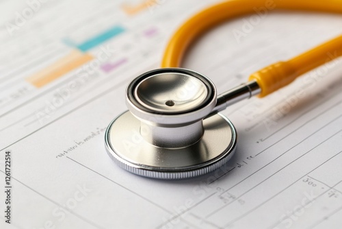 Elegant, Precision Medical Display Stainless Steel Stethoscope and Modern Info-Charts on Paper - Healthcare Marketing and Data-Driven Hospital Communication Solutions