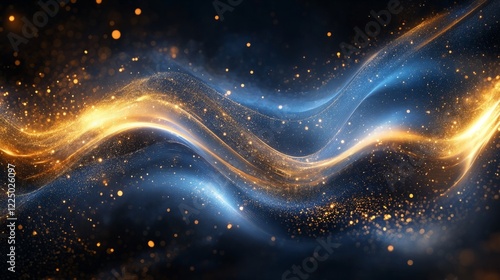 Elegant premium design of glowing blue and gold light streaks softly blending on a smooth gradient