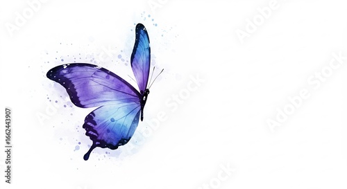 Elegant purple butterfly gently floats on white background soft light. AI Generated