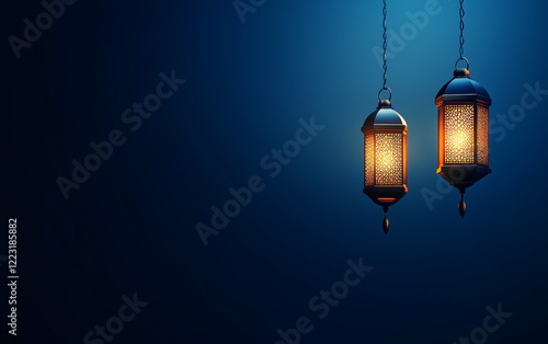 Elegant Ramadan Kareem background with hanging lanterns