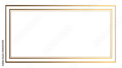 Elegant rectangular gold border frame with thin lines and accents transparent background