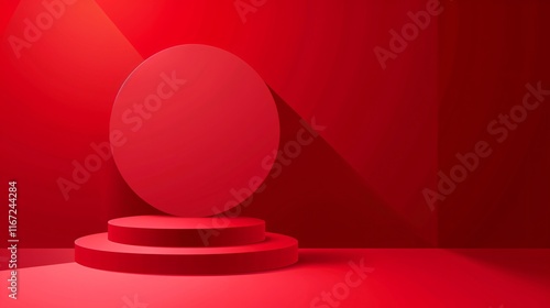 Elegant Red Cosmetic Presentation Podium on Stage Background