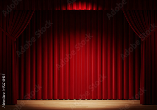 Elegant red curtain stage podium for product display and presentation event backdrop