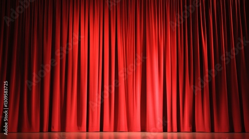 Elegant red curtains draping a stage, creating an atmosphere of anticipation for a performance