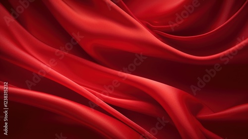 Elegant Red Fabric Drapery, Flowing Textures, Luxurious Cloth with Soft Waves, Vibrant Color, Ideal for Backgrounds and Fashion Applications