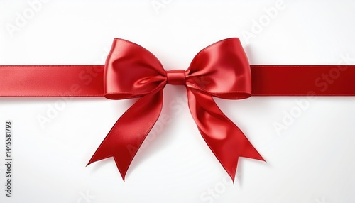 elegant red satin ribbon bow on white background for new year design, perfect for web graphics, holiday branding, packaging, and festive print media