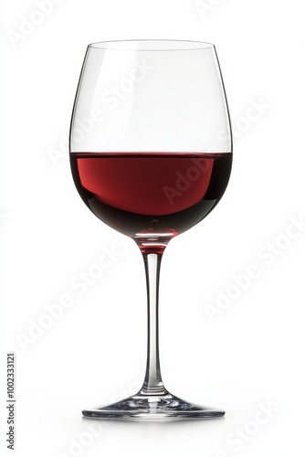 Elegant Red Wine Glass Filled With Rich Wine Against a Plain White Background