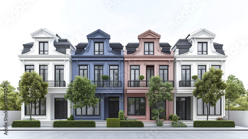 Elegant row of colorful townhouses with classic architecture