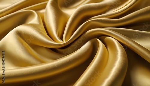 Elegant Satin Waves A 4K close-up of golden satin fabric with delicate curves and soft folds capturing its smooth texture and radiant sheen. Ideal for luxury fashion or abstract backgrounds.
