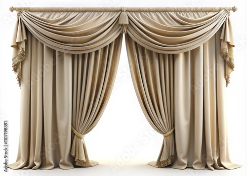 Elegant Silhouette of Flowing Curtains Isolated on a White Background with Clipping Path for 3D Render, Perfect for Interior Design and Home Decor Projects