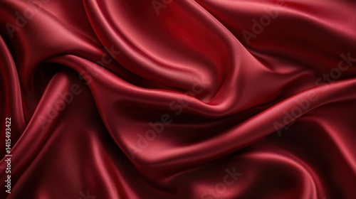 Elegant Silky Satin Fabric Draping in Deep Red – Glossy Smooth Texture and Soft Highlights for Luxury and Fashion Concepts