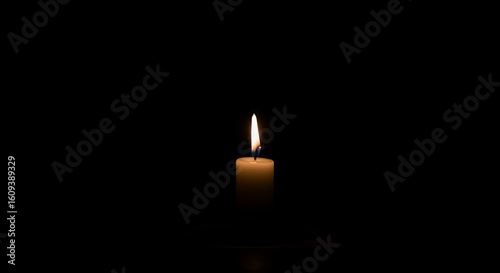 Elegant single candle flame burning brightly in the darkness of the night