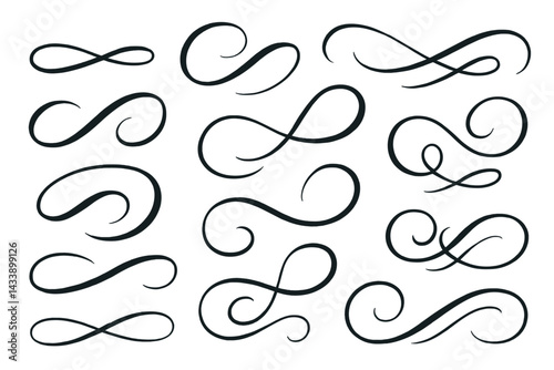 Elegant swirling icon set featuring artistic curves and lines for creative designs and projects