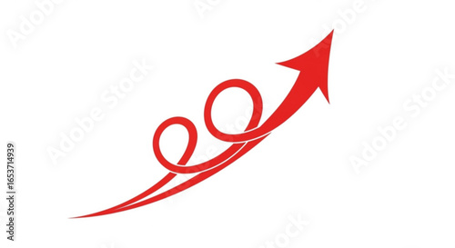 Elegant swirling red arrow illustration representing business growth, progress, and a strategic upward direction.