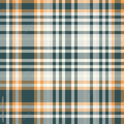 Elegant teal, beige, and orange plaid pattern. Perfect for textile design, apparel, or autumnal branding. Subtle herringbone weave adds texture. Versatile background or seamless repeat.