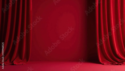 Elegant velvet curtains, deep crimson red backdrop, background, studio backdrop, fabric