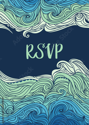 Elegant vertical waves border. Wavy striped pattern. Hand-drwn frame in doodle style. Template for card, invitation or poster. EPS 8.