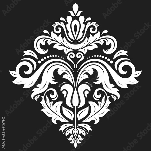 Elegant vintage square ornament in classic style. Abstract traditional black and white pattern with oriental elements. Classic vintage pattern