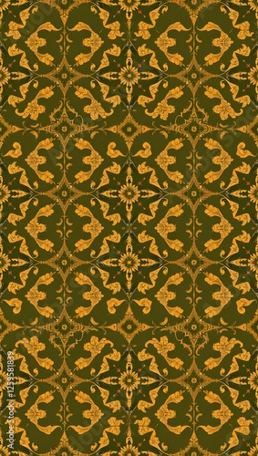 Elegant wallpaper design featuring intricate golden patterns on a dark green background for smartphone use