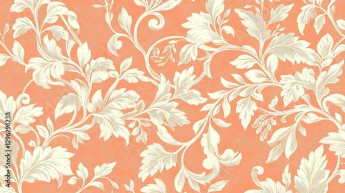 Elegant wallpaper design, featuring soft peach curled patterns, with a simple yet timeless aesthetic, suitable for indoor decoration.