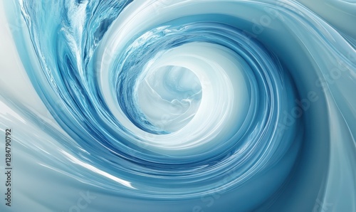 Elegant water swirl in shades of blue and white, forming a dynamic abstract wave against a smooth gradient background, capturing fluid motion