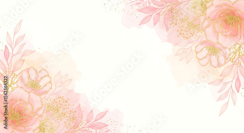 Elegant Watercolor Floral Frame Pink Roses and Gold Accents
