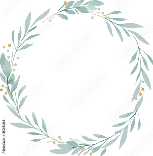 Elegant Watercolor Greenery Wreath, Botanical Circular Frame, Floral Design