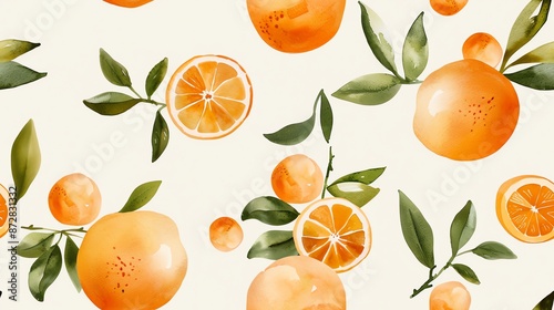 Elegant watercolor pattern of hand-drawn oranges in a seamless design