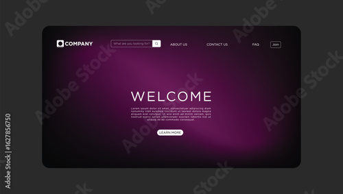 Elegant website interface design with welcome message in stylish purple gradient background