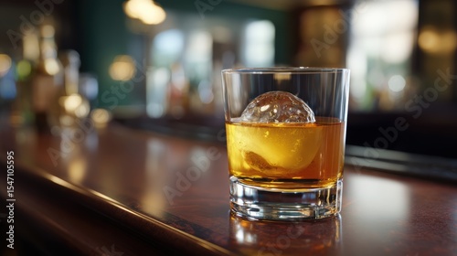 Elegant whiskey on the bar with an ice sphere capturing a moment of relaxation a refined drink for a sophisticated night in a luxury lounge setting