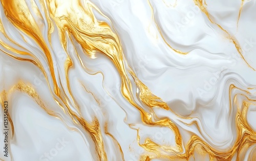 Elegant white and gold swirling marble with shiny gold veins for luxury interior design and upscale architecture projects